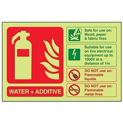 VSafety Glow In The Dark Water Additive Id Fire Extinguisher Sign 200mm x 150mm Self Adhesive Vinyl