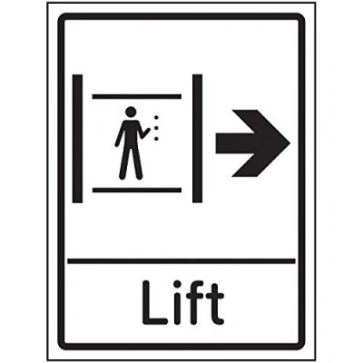 Help visitors and staff on your premises to easily locate lifts Ideal for use in a huge variety of environments and workplaces Specifically designed signs ensure the information is relevant to the setting Complies with the Health and Safety (Safety Signs and Signals) Regulations 1996 and EN ISO 7010:2012 ighly durable – made from reliable self adhesive aluminium effect vinyl