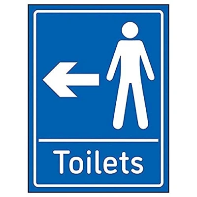 VSafety Mens Toilets Arrow Left 200mm x 300mm Blue Self Adhesive Vinyl