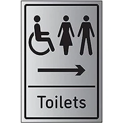 VSafety Mixed Toilets Arrow Right 200mm x 300mm 3mm Brushed Aluminium Composite