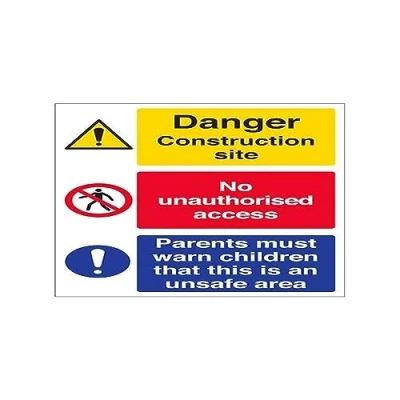 Helps to fulfil legal obligations to inform employees, visitors and the general public of potential hazards as per Health and Safety (Safety Signs & Signals) Regulations 2096 Conforms to EN ISO 7010: 2012 - Warning signs feature a triangular symbol with a black pictogram and yellow background occupying at least 50% of the total sign area Portrait Orientation. Sign reads "Danger. Construction Site. No Unauthorised Access. Paresnts Must Warn Children That This Is An Unsafe Area" Printed on strong 2mm thick white High Impact Polystyrene (HIPS) plastic - ideal for outdoor use