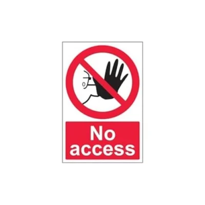 Clearly displays prohibited and potentially dangerous actions which employees and visitors must avoid in the interests of health and safety as per Health and Safety (Safety Signs & Signals) Regulations 1996 Conforms to EN ISO 7010:2012 - Prohibition signs feature a red circular symbol of at least 35% of the total sign area, on a white background, with a black pictogram Portrait Orientation. Sign reads "No Access" Highly durable Self Adhesive Vinyl material and screen printed message will stand the test of time Sign measures 200 x 300mm. Self Adhesive material will adhere securely to most surfaces