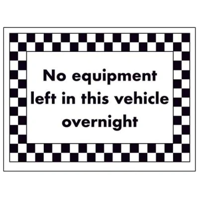 VSafety No Equipment Left in This Vehicle Overnight Sign 200mm x 150mm 1mm Rigid Plastic