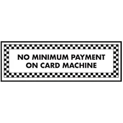VSafety No Minimum Payment On Card Machine Sign 300mm x 100mm Self Adhesive