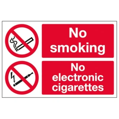VSafety No smoking electronic cigarettes 800x600mm 2mm Rigid Plastic Safety Sign