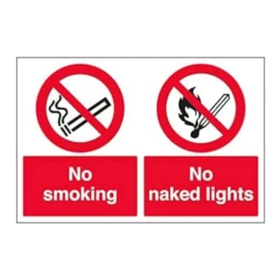 VSafety No Smoking/No Naked Light 800x600mm 2mm Rigid Plastic Safety Sign