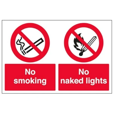 VSafety No Smoking/No Naked Light 800x600mm Class RA1 Reflective 3mm Aluminium Composite With Fixing Channel Safety Sign