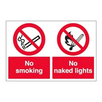 VSafety No Smoking/No Naked Light 800x600mm Self Adhesive Vinyl Safety Sign