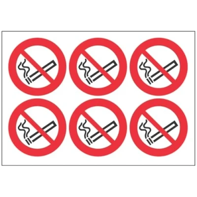 VSafety No Smoking Symbol Sign Sheet of 6 Labels 65mm Dia Self Adhesive Vinyl