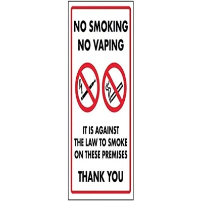 Clearly establishes areas where smoking is prohibited and allowed Smoke-free signs are a legal requirement for all UK businesses Bold enough to be effective, yet small enough to be discreet Highly durable – made from either durable rigid plastic or self-adhesive flexible vinyl Clearly highlight areas where smoking and vaping is prohibited, Weight: 0.2425084882 pounds, Manufacturer: VSafety