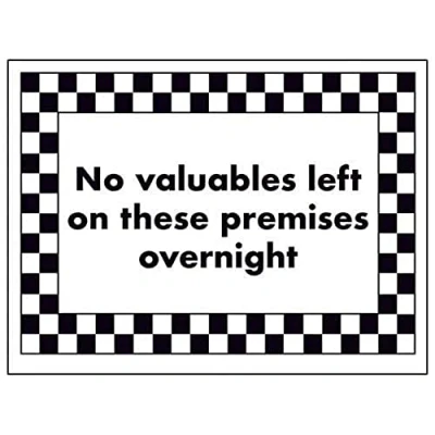 VSafety No Valuables Left on These Premises Overnight Sign 200mm x 150mm 1mm Rigid Plastic