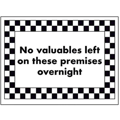 VSafety No Valuables Left on These Premises Overnight Sign 200mm x 150mm Self Adhesive Vinyl
