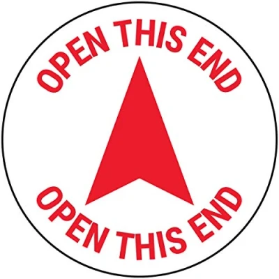 VSafety Open This End Red Sticker 50mm Diameter (Roll of 250)
