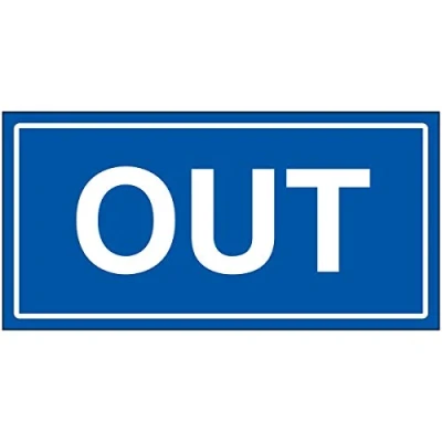 Vsafety Out Sign 300x150mm Blue Self Adhesive Vinyl
