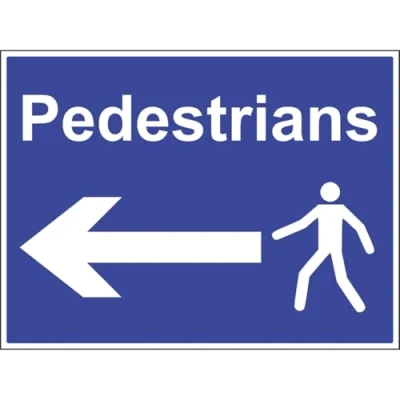 Vsafety Pedestrians, Arrow Left Sign 600mm x 450mm 2mm Rigid Plastic