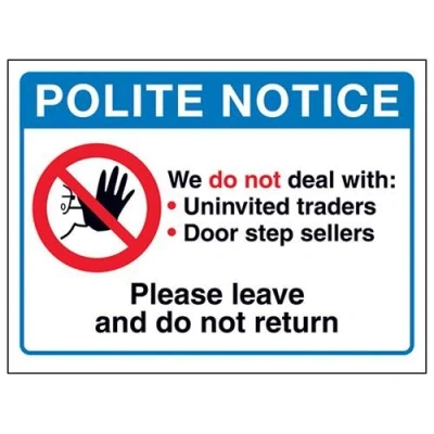 VSafety Polite Notice: We Do Not Deal With Univited Sellers Sign 150mm x 100mm Window Sticker