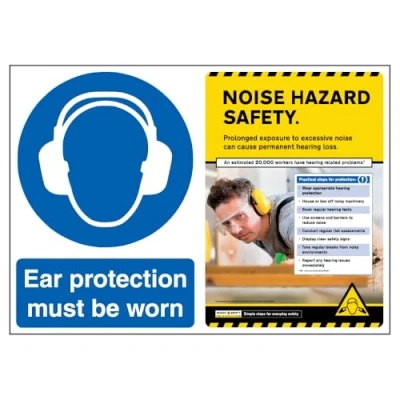 Keep staff and visitors safe – ISO compliant sign instructs staff and visitors that ear protection must be worn, and the poster alongside it provides relevant noise safety guidance Get an ISO compliant sign and safety poster all in one – no need to buy separately! Increase health and safety awareness in your workplace Made from durable materials that will last for years in any environment, Easy to keep clean – keeps your sign/poster combo looking fresh and new Available in fully recyclable Standard 0.2mm Flexi-Plastic or 2mm Rigid Plastic 2mm Rigid Plastic sign/poster combo's are supplied with self-adhesive tabs for affixing