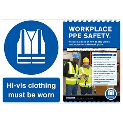 Keep staff and visitors safe – ISO compliant sign warns staff and visitors that hi-vis clothing must be worn, and the poster alongside it provides relevant safety guidance Get an ISO compliant sign and safety poster all in one – no need to buy separately! Increase health and safety awareness in your workplace Made from durable materials that will last for years in any environment, Easy to keep clean – keeps your sign/poster combo looking fresh and new Available in fully recyclable Standard 0.2mm Flexi-Plastic or 2mm Rigid Plastic 2mm Rigid Plastic sign/poster combo's are supplied with self-adhesive tabs for affixing