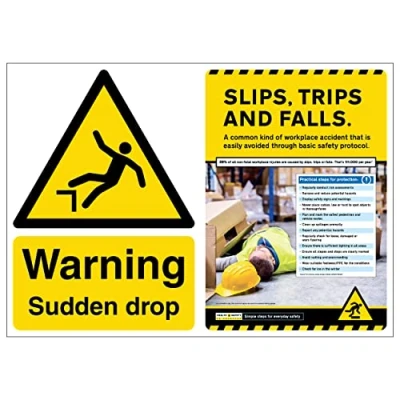 VSafety Poster Combo Warning Sudden Drop/Slips, Trips, Falls 600x450 2mm Rigid Plastic Safety Sign