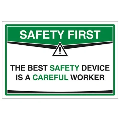 VSafety Safety First Sign The Best Device Is A Careful Worker 300 x 200mm, 1mm Rigid Plastic