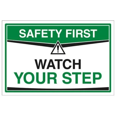 VSafety Safety First Sign Watch Your Step 300 x 200mm, 1mm Rigid Plastic