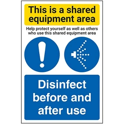 Vsafety Shared Equipment Area/Disinfect 200mm x 300mm 1mm Rigid Plastic