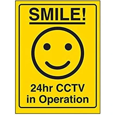VSafety Smiley Face 24hr CCTV in Operation Sign 150mm x 200mm Rigid Plastic