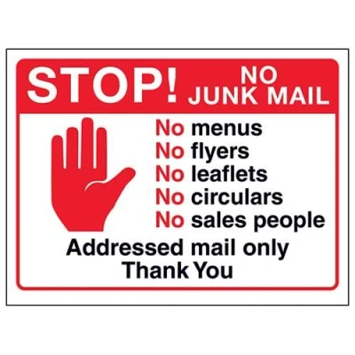 Junk Mail and Cold Caller Signs are the ideal solution for keeping unwanted post and callers away Help to prevent trespassing and junk mail and unsolicited flyers being posted Deter cold callers, religious organisations and sales people Bold enough to be effective, yet small enough to be discreet Available in self adhesive vinyl or face adhesive window stickers - perfect for internal or external use, Weight: 0.0220462262 pounds, Manufacturer: VSafety