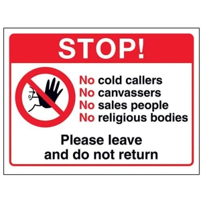 VSafety Stop! No Cold Callers or Canvassers Sign 200mm x 150mm Window Sticker