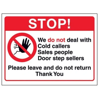 VSafety Stop! We Do Not Deal With Door Sellers Sign 150mm x 100mm Window Sticker