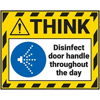 Vsafety Think Sticker Disinfect Door Handle 100x80mm Yellow Self Adhesive Vinyl
