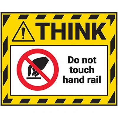 Vsafety Think Sticker Do Not Touch Hand Rail 100x80mm Yellow Self Adhesive Vinyl