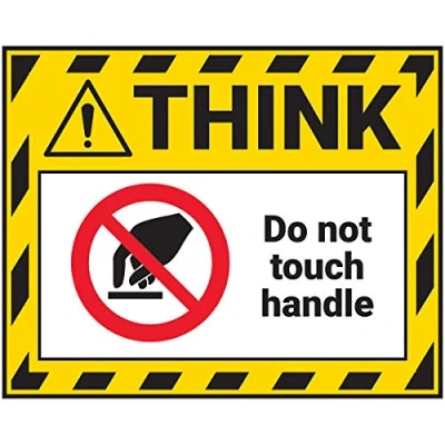 Vsafety Think Sticker Do Not Touch Handle 100x80mm Yellow Self Adhesive Vinyl