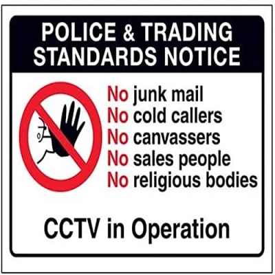 VSafety Trading Standards: No Cold Callers CCTV in Use Sign 150mm x 100mm Window Sticker