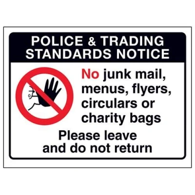 VSafety Trading Standards: No Junk Mail or Charity Bags Sign 150mm x 100mm Window Sticker