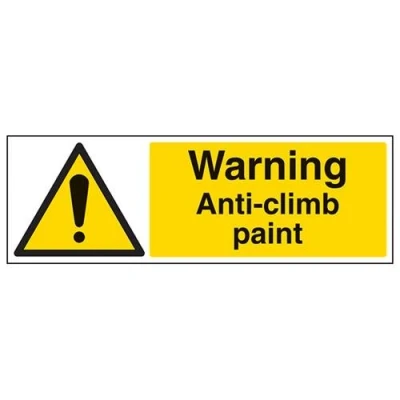 Helps to fulfil legal obligations to inform employees, visitors and the general public of potential hazards as per Health and Safety (Safety Signs & Signals) Regulations 2028 Conforms to EN ISO 7010: 2012 - Warning signs feature a triangular symbol with a black pictogram and yellow background occupying at least 50% of the total sign area Landscape Orientation. Sign reads "Warning. Anti-Climb Paint" Printed on strong 2mm thick white High Impact Polystyrene (HIPS) plastic - ideal for outdoor use
