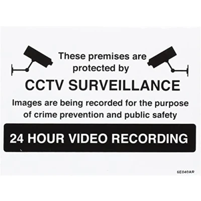 Helps to fulfil legal obligations to inform employees, visitors and the general public of potential hazards as per Health and Safety (Safety Signs & Signals) Regulations 1996 Conforms to EN ISO 7010:2012 - Warning signs feature a triangular symbol with a black pictogram and yellow background occupying at least 50% of the total sign area Landscape Orientation. Sign reads "These Premises Are Protected By CCTV Surveillance. Images Are Being Recorded For The Purpose Of Crime Prevention And Public Safety. 24 Hour Video Recording" Highly durable 1mm plastic material and screen printed message will stand the test of time Sign measures 200 x 150mm