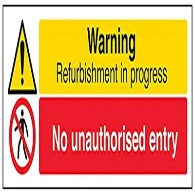 VSafety Warning, Refurbishment In Progress/No Unauthorised Entry Sign Landscape 300mm x 100mm Self Adhesive Vinyl