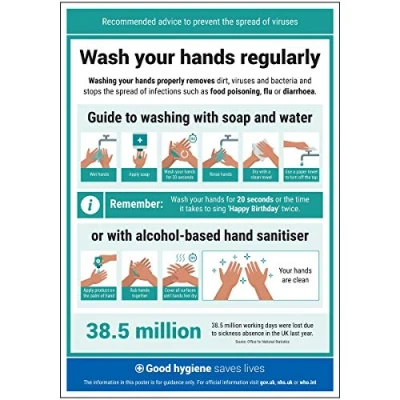 Striking design with clear messaging presents vital information with impact to reinforce recommended hygiene protocol Ideal for display around all premises - demonstrates a commitment to enforcing good hygiene practices Significantly more professional in appearance than self-printed materials Printed directly on to 0.2mm polypropylene for crisp, high image quality Highly durable and resistant to tearing - made to stand the test of time, unlike other paper laminated alternatives, Weight: 0.0661386786 Pounds, Manufacturer: VSafety Ltd.