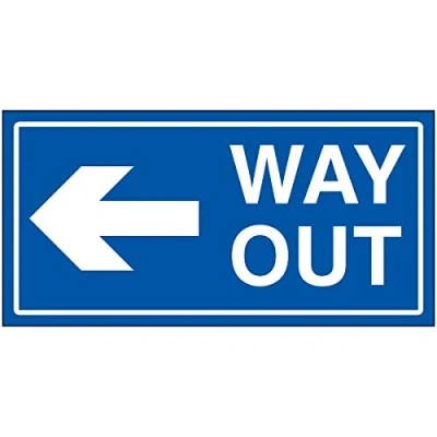Vsafety Way Out Arrow Left Sign 300x150mm Blue Self Adhesive Vinyl