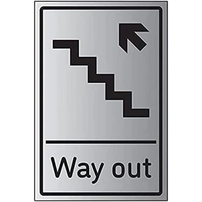 VSafety Way Out Arrow Up Stairs Left 150mm x 200mm 1.6mm Aluminium Effect Rigid Plastic