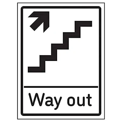VSafety Way Out Arrow Up Stairs Right 200mm x 300mm 1mm Rigid Plastic