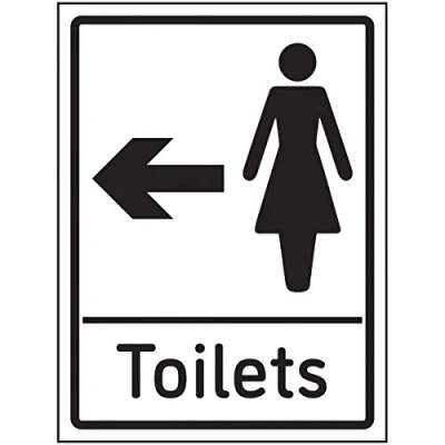 VSafety Womens Toilets Arrow Left Sign 150x200mm Self Adhesive Aluminium Effect