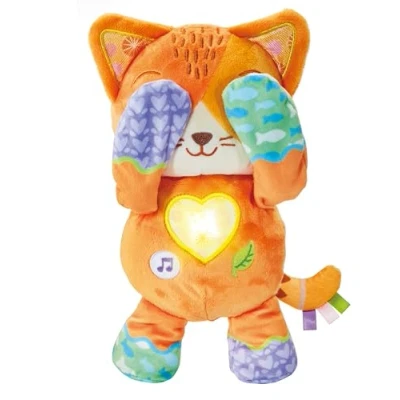 PEEK-A-BOO TOY: Engage your little one with the Peek-a-Boo Paws By VTech, a cute kitty that covers and uncovers its eyes with a press of a button, creating delightful peek-a-boo surprises! INTERACTIVE TOY: Your child will be encouraged to interact with the kitty through phrases and songs, fostering early language skills and creating an interactive playtime experience. MUSICAL TOY: Enjoy 4 sing-along songs and 15 fun melodies with the music button. SOOTHING TOY: Press the leaf button to hear a variety of soothing nature sounds, promoting relaxation and calmness. DEVELOPMENTAL TOY: Peek-a-Boo Paws offers different textures that help develop tactile awareness, providing sensory stimulation while engaging with the kitty's interactive phrases and songs., Manufacturer: Vtech Electronics