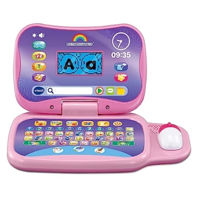 Age-appropriate learning laptop with illuminated LCD screen, colourful ABC keyboard, mouse and many buttons for activities 5 different game modes with 20 activities to discover numbers, shapes, vocabulary, logic, English words, animals, food and much more Personalization: Create your own character, select background and welcome music, and more choices Music and instruments: listen to different instruments and music styles Child-safe battery compartment, automatic switch-off and volume control, Manufacturer: VTech