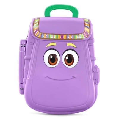 DORA LEARNING BACKPACK: Open Backpack for fun learning activities with Dora and friends! 26 LETTER BUTTONS: Learn letters, sounds, and objects from the show. WRITE & ERASE BOARD: Use the stylus to write letters and draw shapes with step-by-step guidance. BILINGUAL LEARNING: Explore letters, writing, and Spanish words through engaging activities. 12 FUN GAMES: Enjoy interactive learning on the go with a backlit LCD screen., Manufacturer: Vtech Electronics