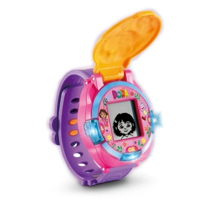DORA ADVENTURE WATCH: Features an LCD screen with fun Dora character animations to engage and entertain. 4 BUILT-IN GAMES: Play with Dora and friends while exploring exciting learning challenges! BILINGUAL LEARNING: Learn how to tell time and plan routines in both English and Spanish. SPANISH VOCABULARLY BOOST: Fun phrases help kids build Spanish language skills effortlessly. CUSTOMISABLE & FUNCTIONAL: Includes 10 digital clock faces, stopwatch, timer, and alarm for daily adventures., Manufacturer: Vtech Electronics