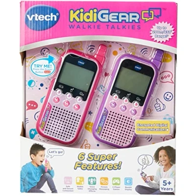 VTech KidiGear Walkie Talkies for Kids, Outdoor 65 foot Long Distance with Secure Digital Connection, Suitable Boys and Girls 5+ years, Pink, English Version