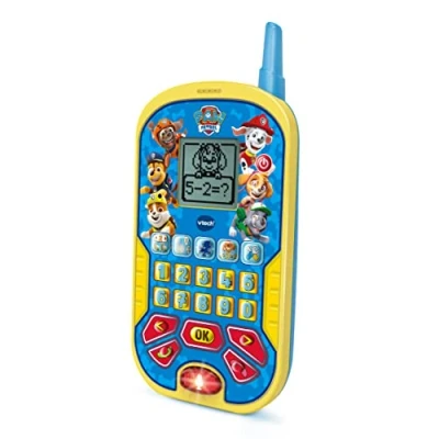 Exciting learning and playing fun: the Paw Patrol learning mobile phone inspires with the original voices of fur friends and invites you to great learning adventures. via voice activation, fun role-playing calls can be made and pressing the figure buttons triggers matching phrases and animations to the heroes of the Paw Patrol 4. The children Learning content on the topics of counting and numbers, easy addition and subtraction as well as compare objects closer / The music can be switched on or off The LCD screen is equipped with cool animations and the phone provides plenty of variety with 10 number buttons, 5 menu buttons and 6 figure buttons for plenty of variety. . Package includes: 1 x VTech Paw Patrol learning mobile phone / children's mobile phone with child-safe battery compartment and automatic switch-off / German version / age: 2-5 years / 2 x AAA demo batteries / item No.: 80-529504