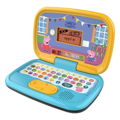 Kids love to learn and explore. And who better to help them along than Peppa Pig? This play and learn laptop is packed with pre-school learning content. Watch your little one blossom as they help Peppa and George find the correct number of apples or help Peppa guess what's hiding behind objects.Good to know- There are 4 modes and 15 activities for them to pick from, including games, puzzles, and music- Helps develop language skills, basic maths skills, problem solving, and more- The backlit LCD screen lets them watch animations from the Peppa Pig series- It's simple to use with an ABC keyboard, 10 number buttons, and direction keys- Press the dedicated Peppa Pig button to hear her snort and say fun phrases